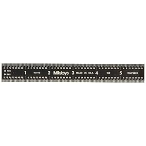 Mitutoyo 182-112, Steel Rule, 6" (16R), (1/32, 1/64, 1/50, 1/100"), 3/64" Thick X 3/4" Wide, Black Chrome Finish Temp...