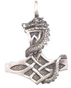 Thor Dragon Thor's Hammer Real Pewter Pendant Necklace